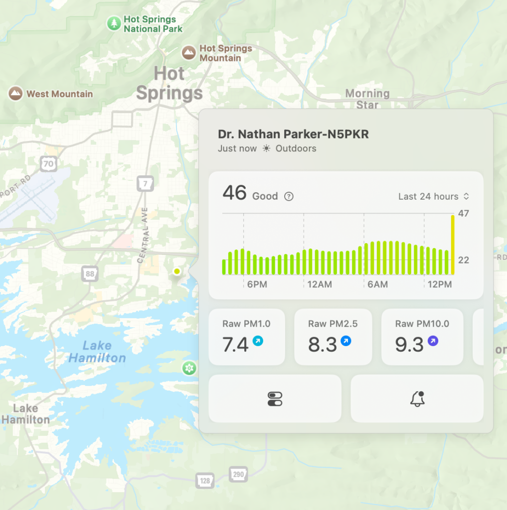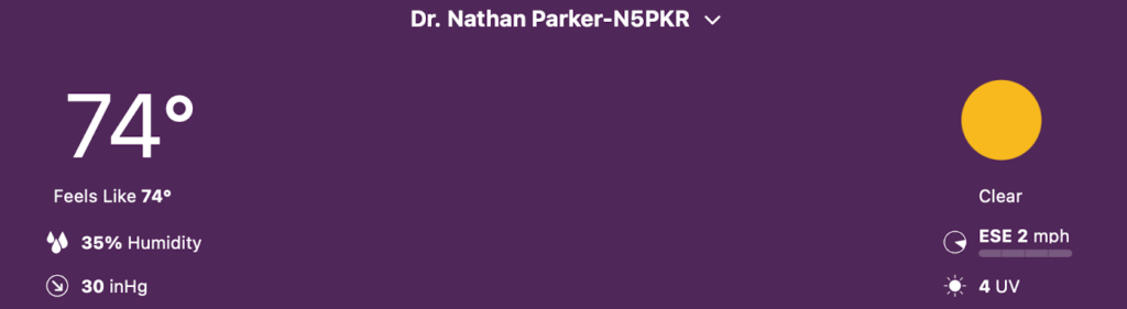 Here’s a look at the current conditions from my Tempest weather station this afternoon, plus here’s a look at the current air quality from my PurpleAir (Paku app).