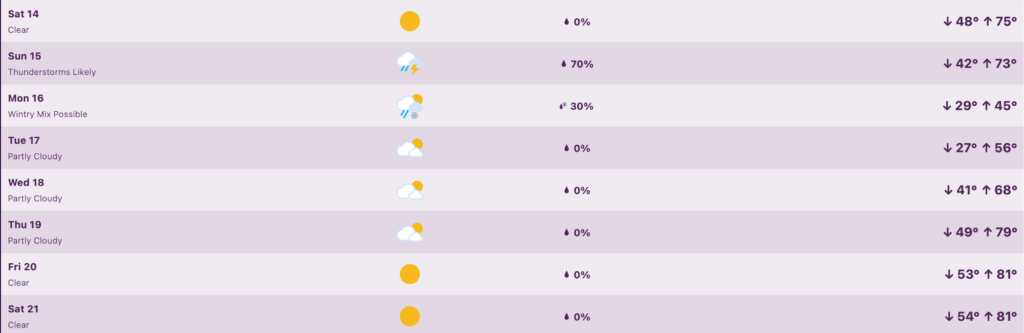 Here’s a look at the seven-day extended forecast for Hot Springs from my Tempest weather station.