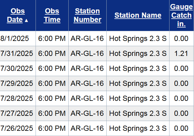 Welcome to another Weekly Wrap Up! This week saw some rain and better temperatures (for the most part) across the Natural State. Here’s a look at the temperature highs and lows over the past week from my Earth Networks weather station in Hot Springs, plus a look at the rain totals this past week from my CoCoRaHS rain gauge.