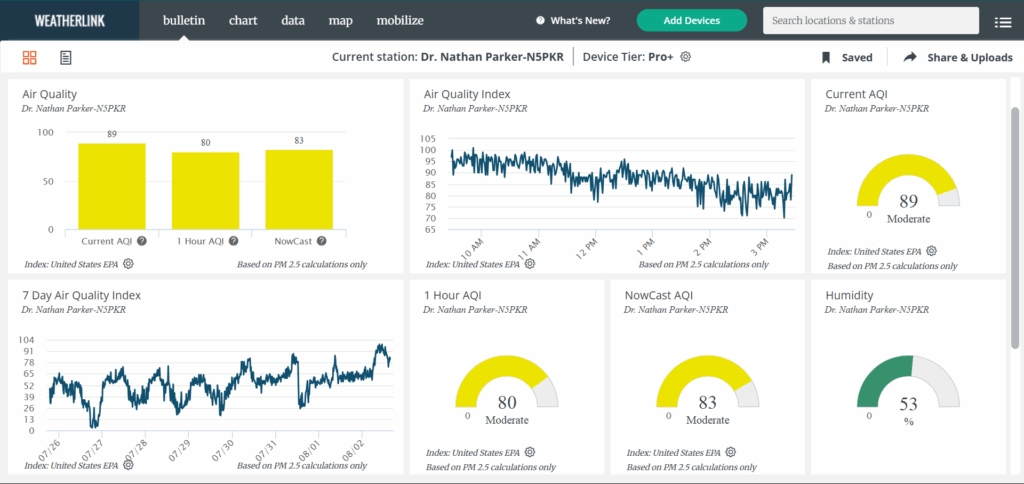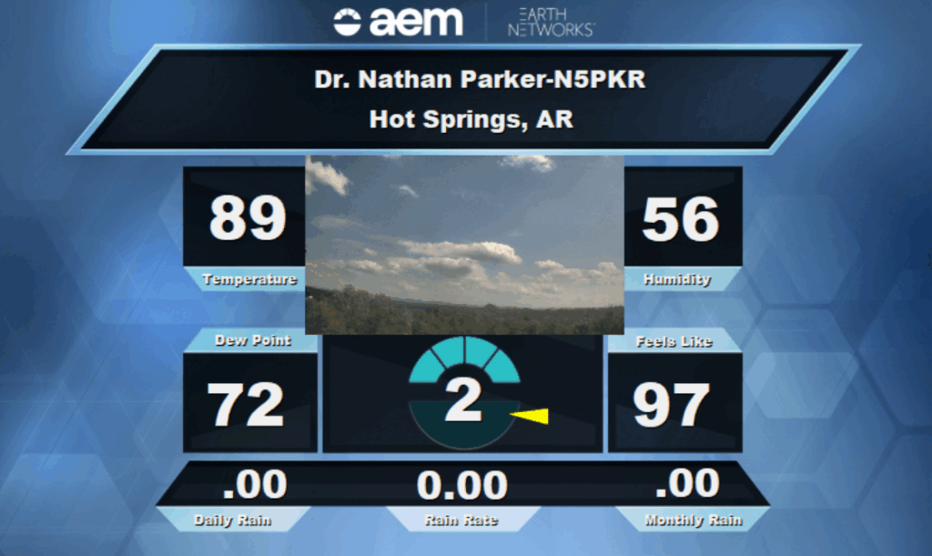 Here’s a look at the current conditions and HD Cam from my Earth Networks weather station in Hot Springs this afternoon, plus here’s a look at the current air quality from my Davis AirLink.