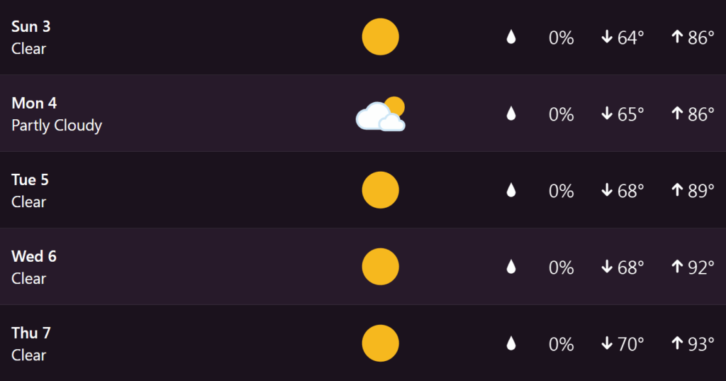 Here’s a look at the extended forecast for Hot Springs from my Tempest weather station.