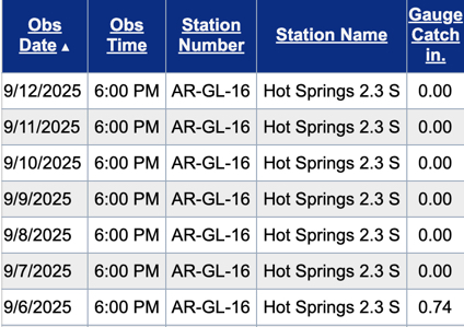 Welcome to another Weekly Wrap Up! This week was hot and dry (except for last Saturday). Here’s a look at the temperature highs and lows from my Earth Networks weather station over the past week, plus a look at rain totals from my CoCoRaHS rain gauge.