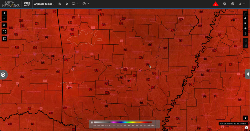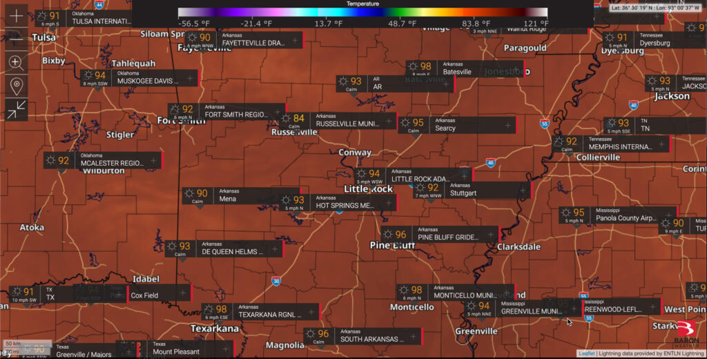 Here’s a look at the current temperatures across the state this afternoon from both NWS and Earth Networks weather stations (maps courtesy of Baron Threat Net and Earth Networks Sferic Maps).