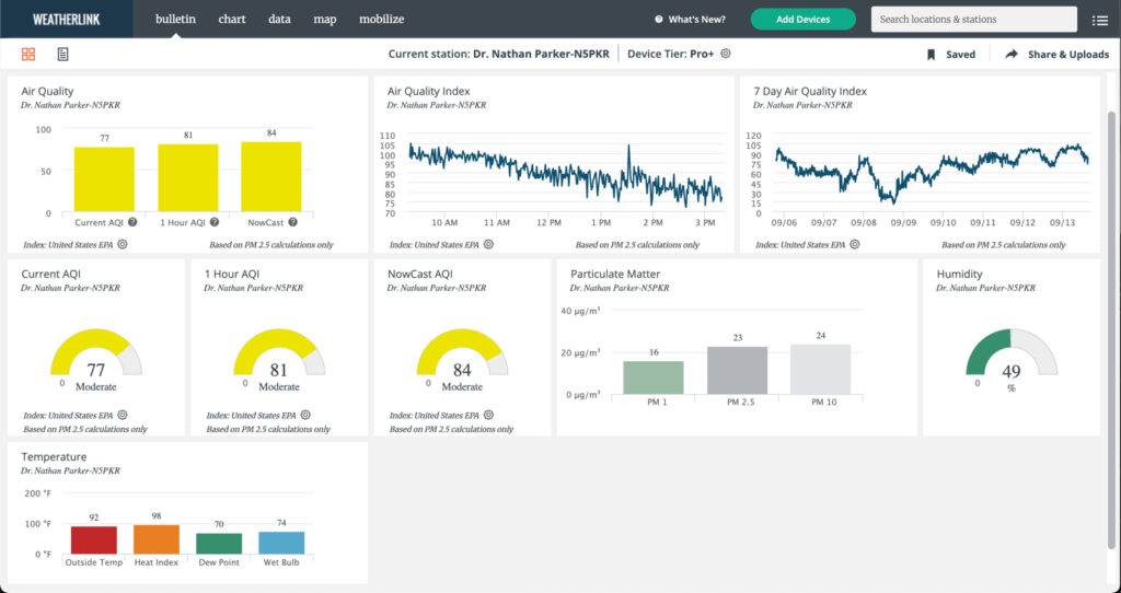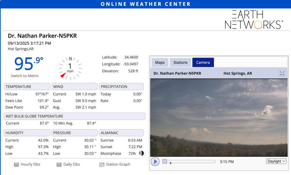 Here’s a look at the current conditions and HD Cam from my Earth Networks weather station this afternoon, as well as the current air quality from my Davis AirLink.