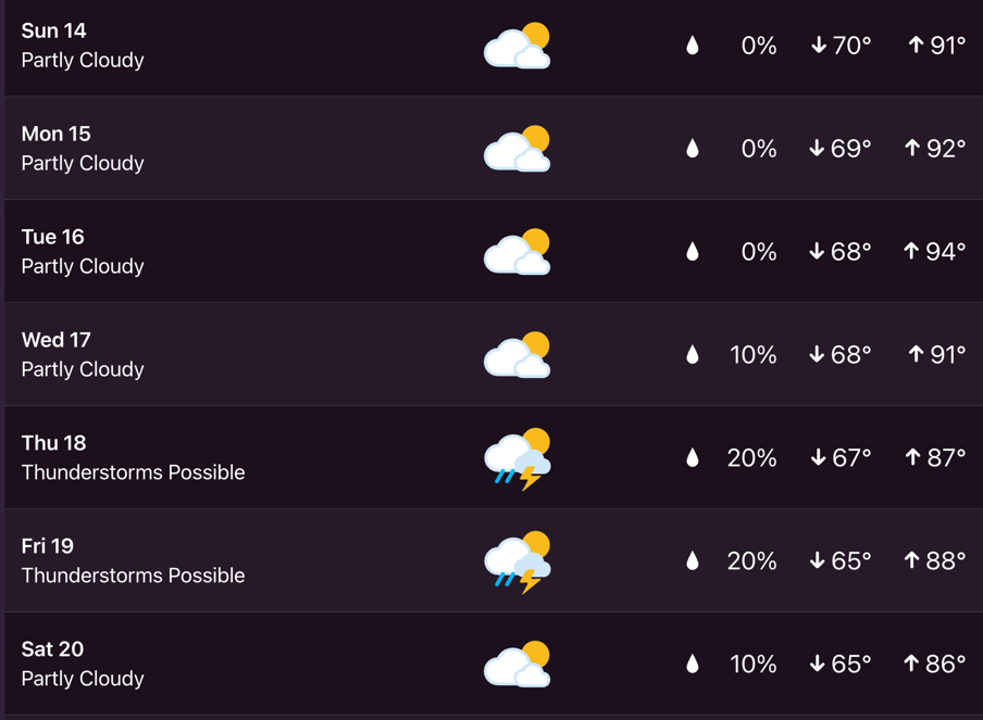 Here’s a look at the seven day extended forecast from my Tempest weather station.