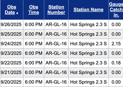 Welcome to another Weekly Wrap Up! This week brought decent temperatures and some rain across the Natural State. Here’s a look at this week’s temperatures from my Tempest weather station, as well as look at rain totals from my CoCoRaHS rain gauge.