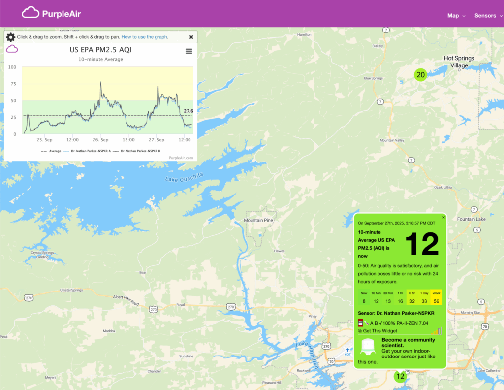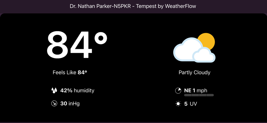 Here’s a look at the current conditions from my Tempest weather station, plus a look at the current air quality from my PurpleAir.