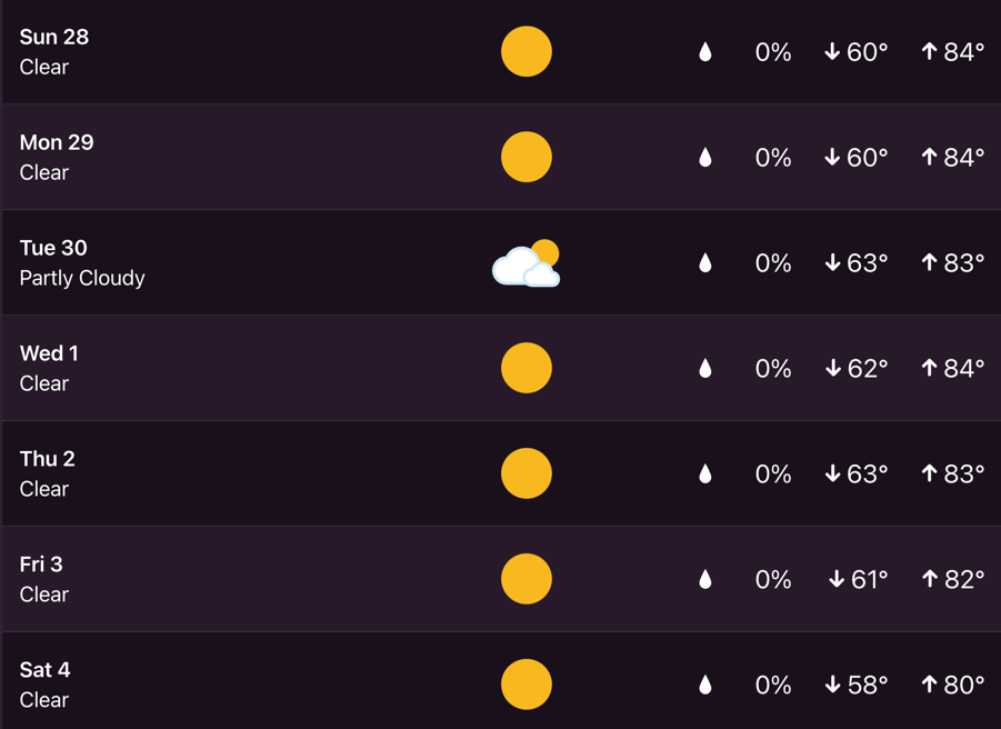 Here’s a look at the seven-day extended forecast from my Tempest weather station.
