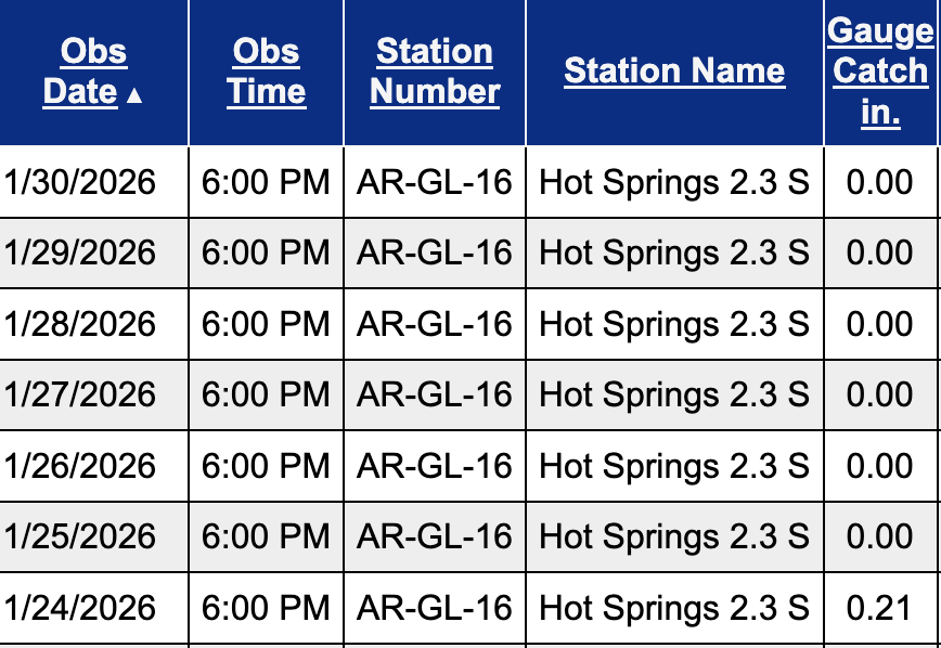 Welcome to another Weekly Wrap Up! This week was cold and wintry across the Natural State. We still had power, Internet, heat, and water, so we’re thankful for that. We didn’t go anywhere, and we didn’t have mail delivery or trash pickup. Here’s a look at the temperature highs and lows this week from my Tempest weather station in Hot Springs. Here’s also a look at the rain totals from my CoCoRaHS rain gauge.