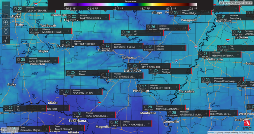 Here’s a look at the temperatures across the state this afternoon (map courtesy of Baron Threat Net).