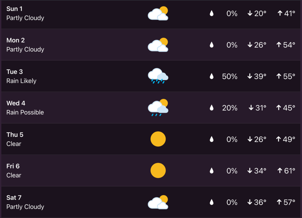 Here’s a look at the seven-day extended forecast for Hot Springs from my Tempest weather station.