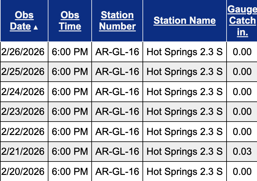 Welcome to another Weekly Wrap Up! This week saw decent temperatures and a little bit of rain across the Natural State. Here’s a look at the temperature highs and lows over the past week from my Tempest weather station, plus a look at rain totals from my CoCoRaHS rain gauge.