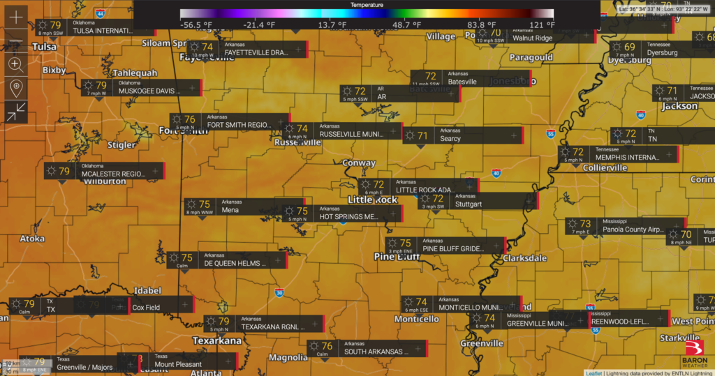 Here’s a look at the current temperatures across the state this afternoon (map courtesy of Baron Threat Net).