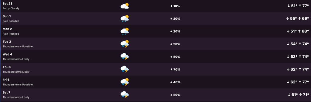 Here’s a look at the seven-day extended forecast from my Tempest weather station.