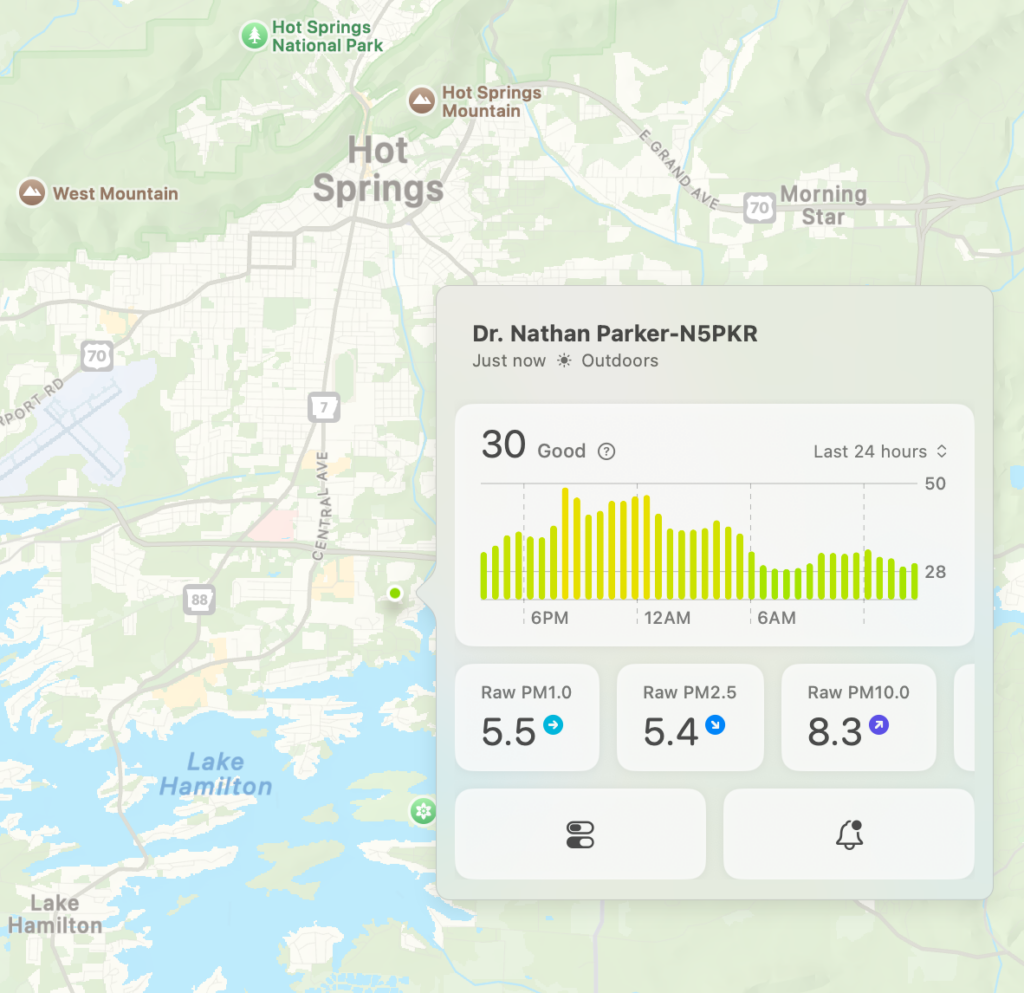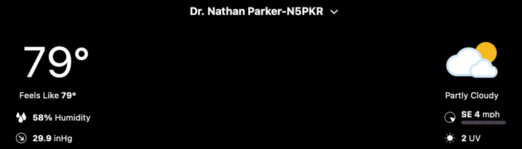 Here’s a look at the current conditions from my Tempest weather station this afternoon, plus a look at the current air quality from my PurpleAir (Paku app).