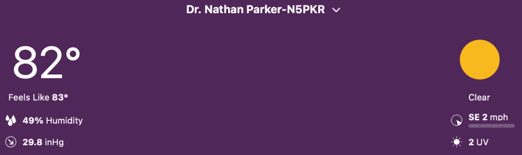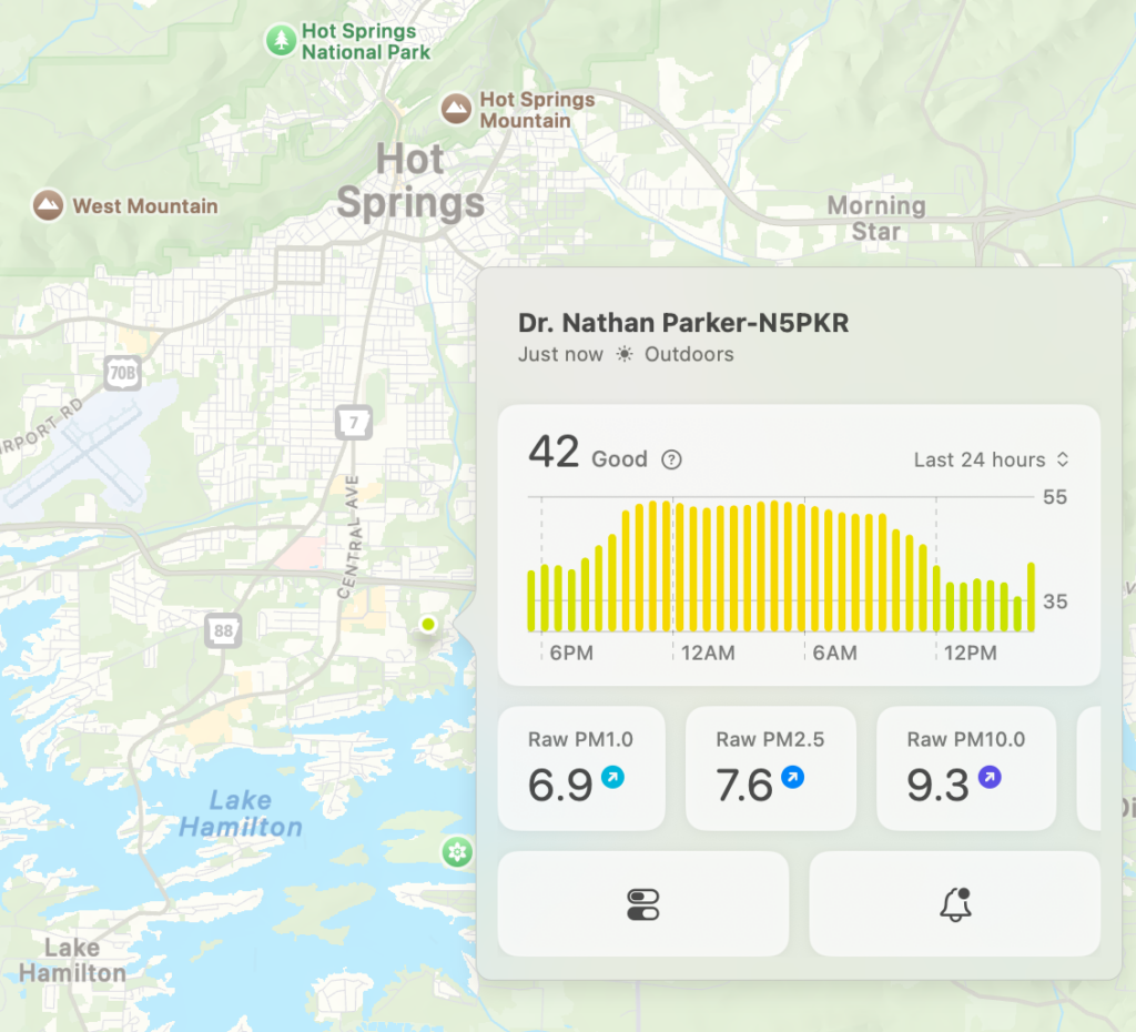 Here’s a look at the current conditions from my Tempest weather station in Hot Springs this afternoon, plus the current air quality from my PurpleAir (Paku app).