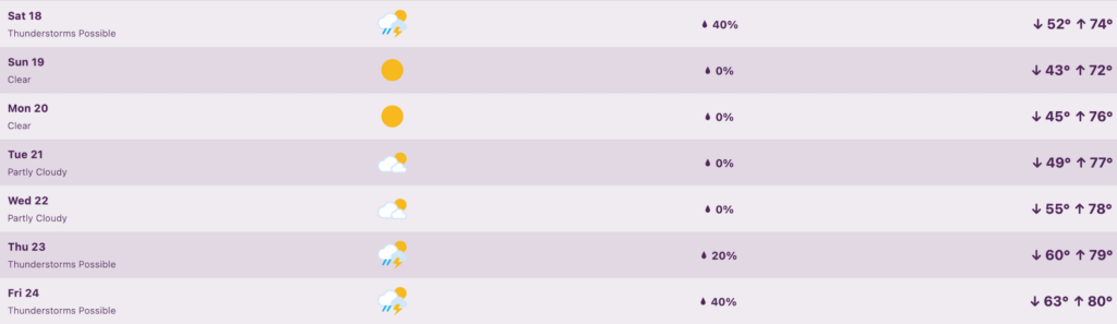 Here’s a look at the seven-day extended forecast for Hot Springs from my Tempest weather station.