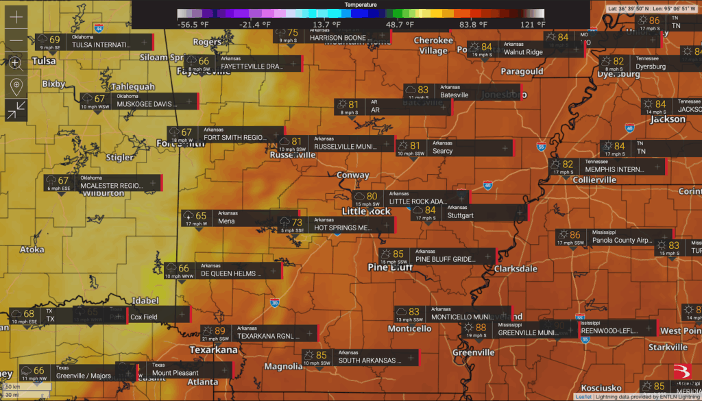 Here’s a look at the temperatures across the state this afternoon (map courtesy of Baron Threat Net).