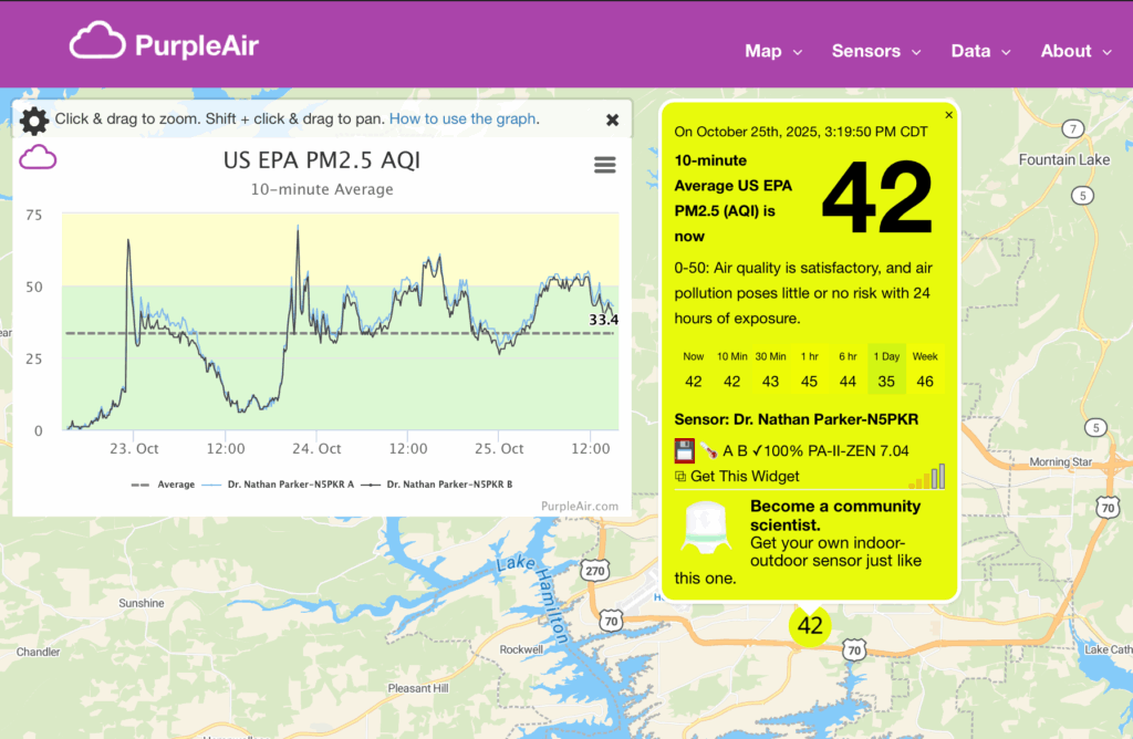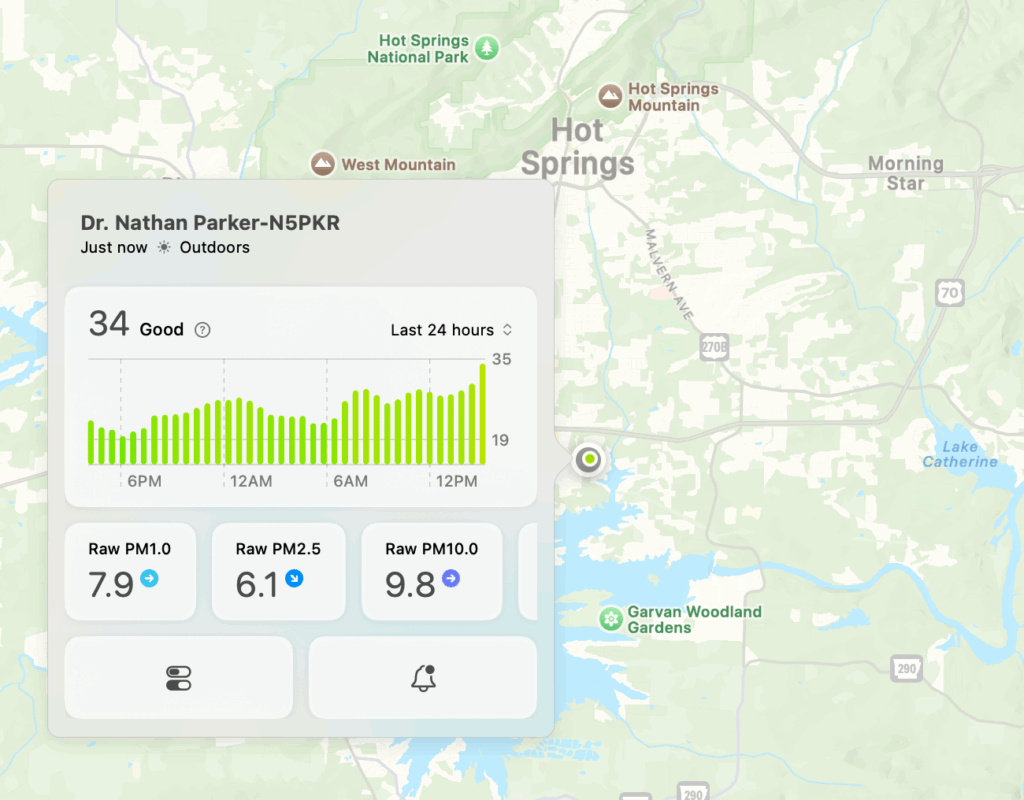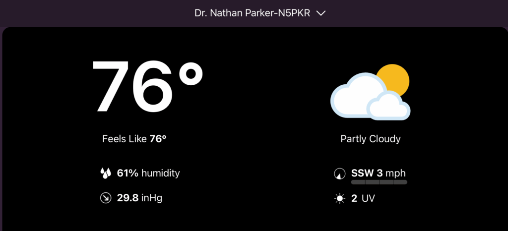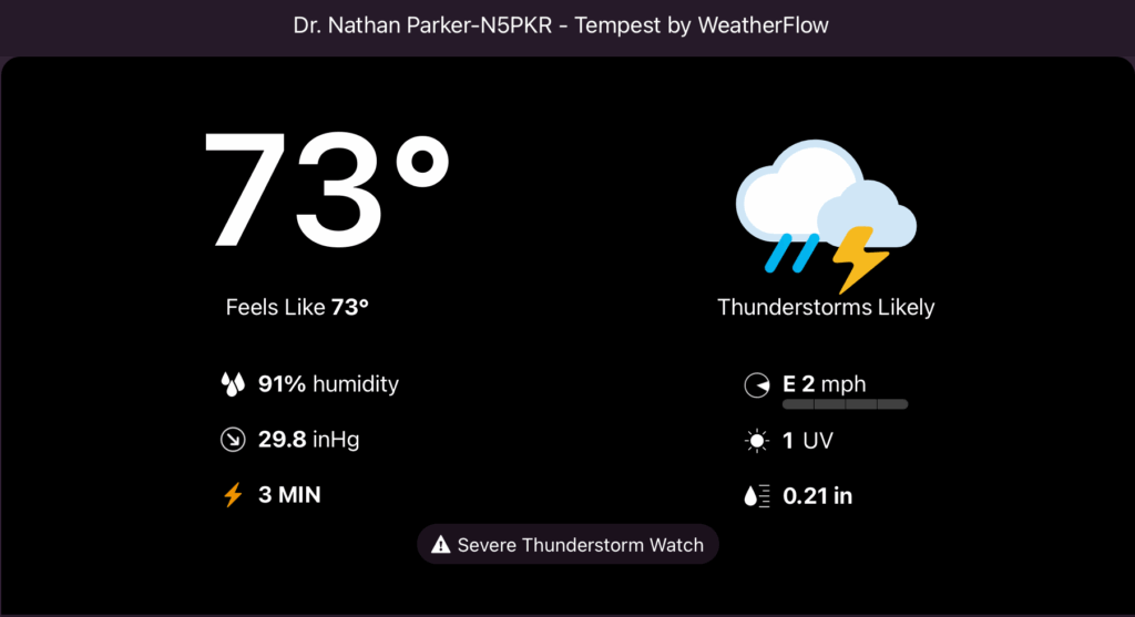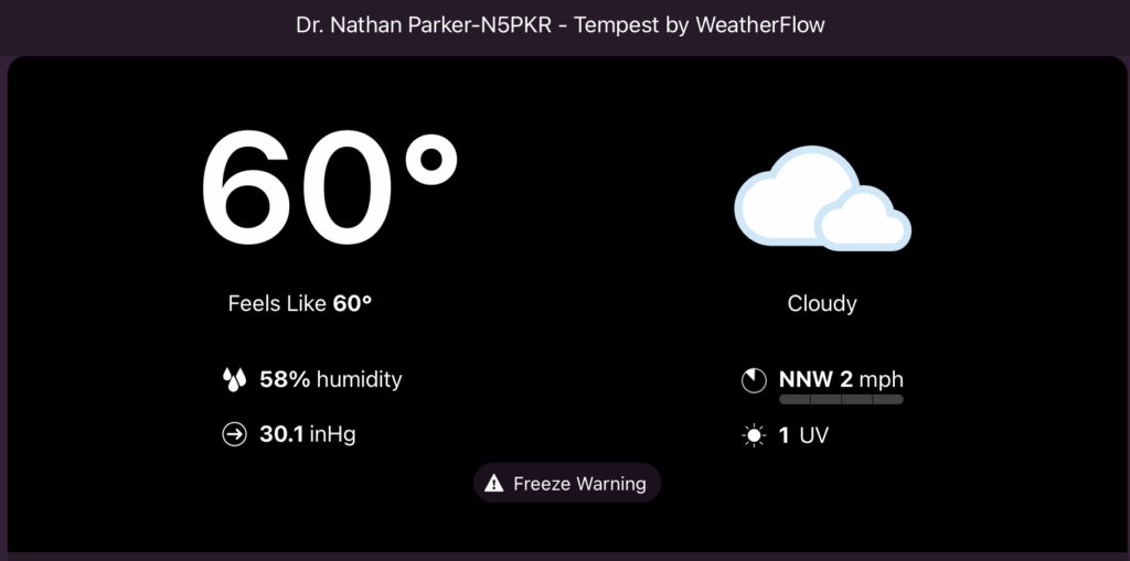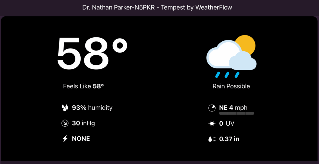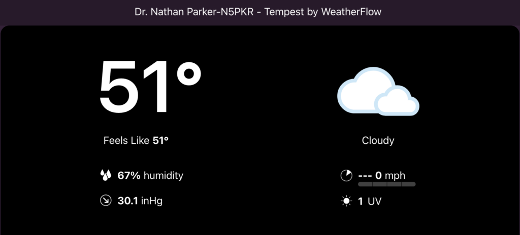 Here’s a look at the current conditions from my Tempest weather station, plus a look at the current air quality from my PurpleAir (Paku app).