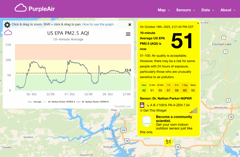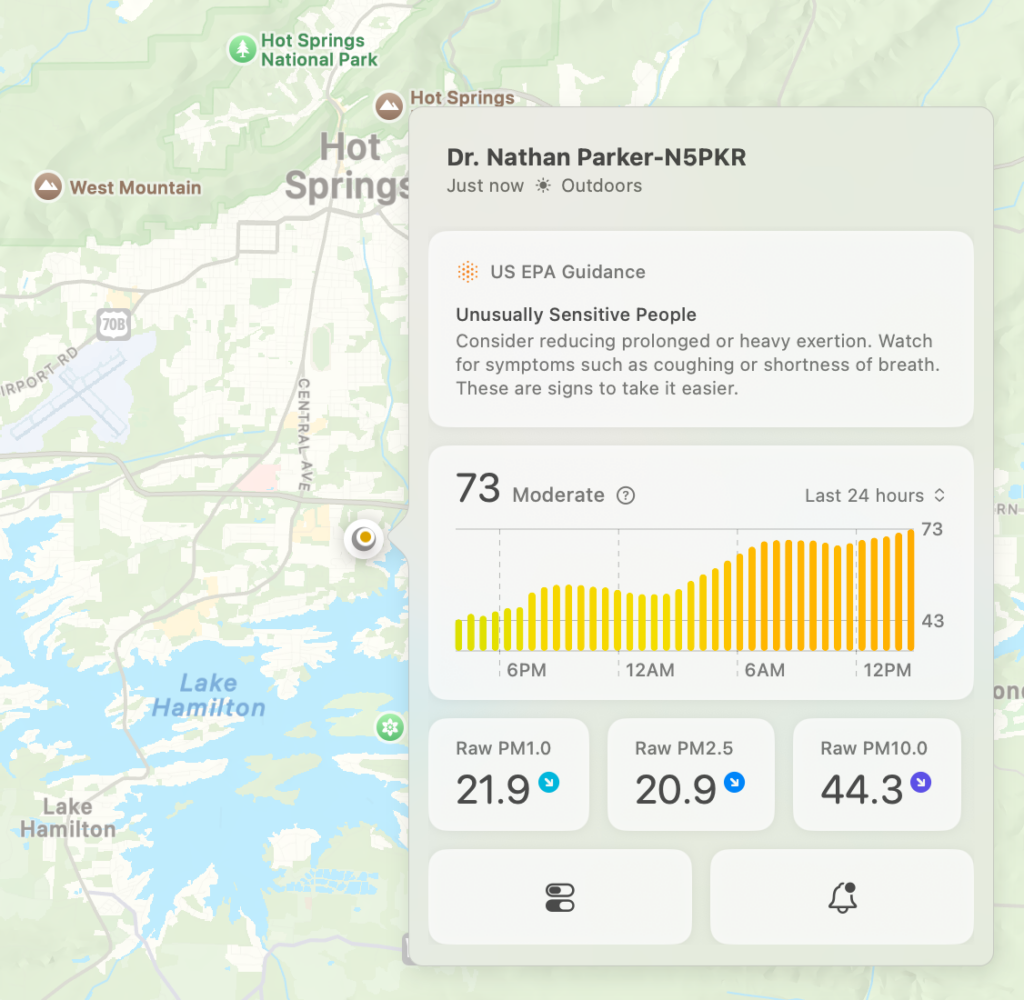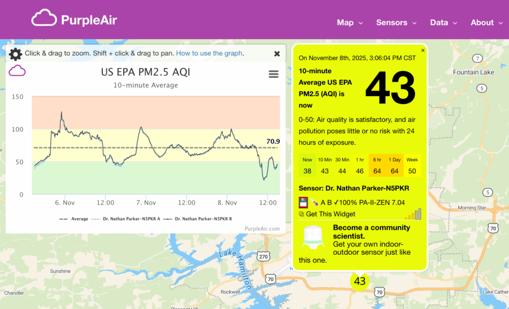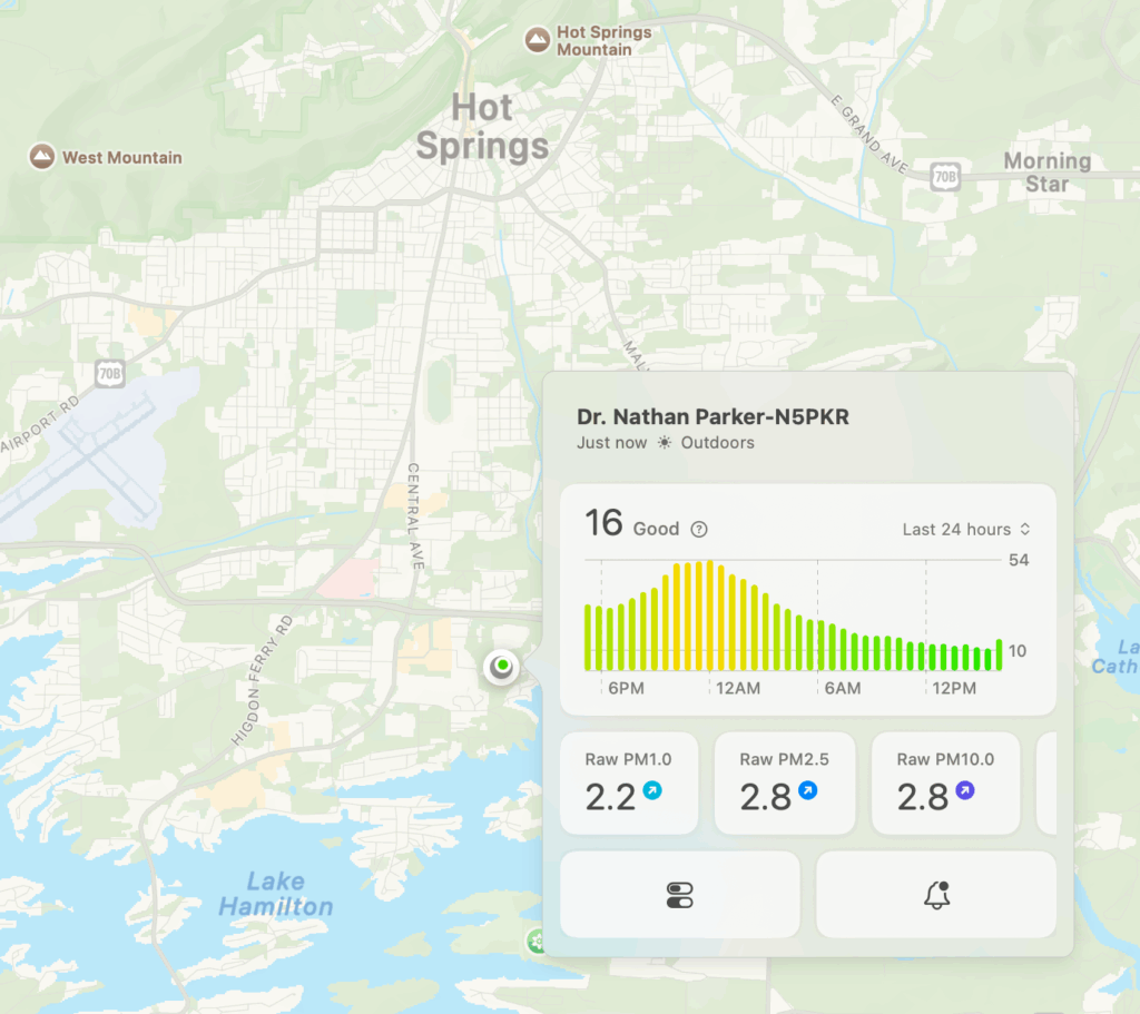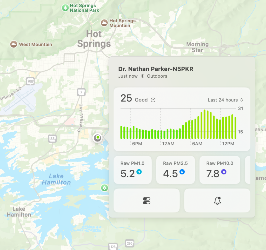 Here’s a look at the current conditions from my Tempest weather station, plus a look at the current air quality from my PurpleAir (Paku app).