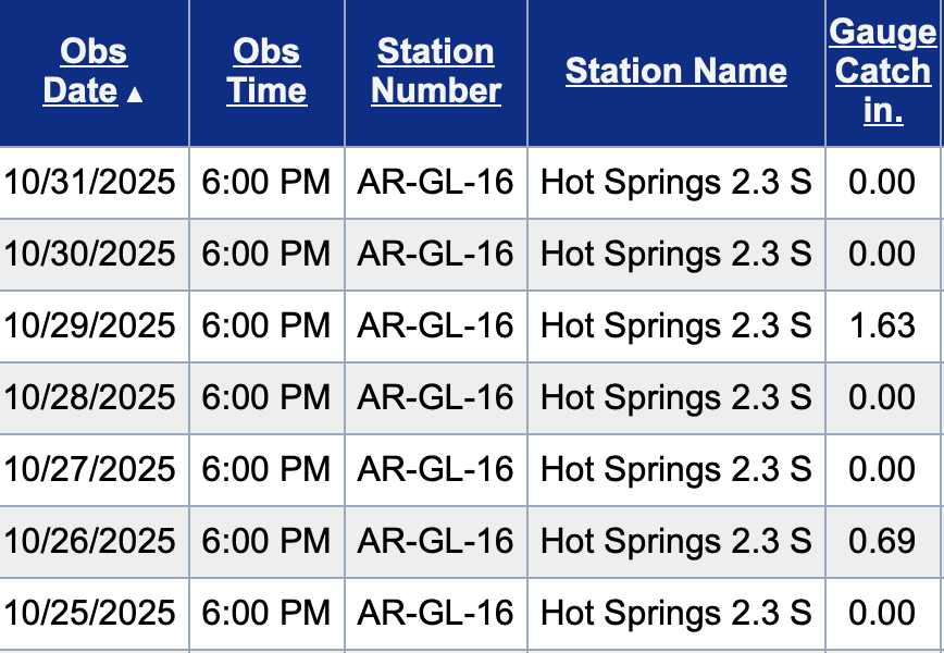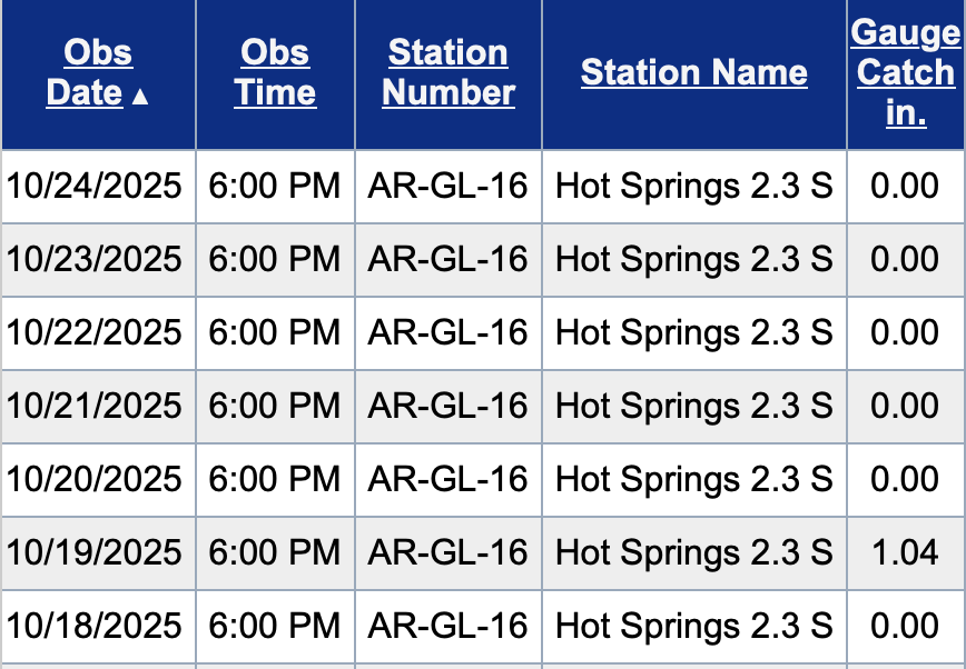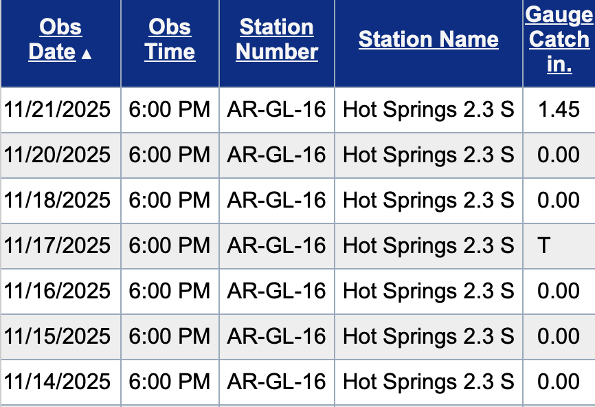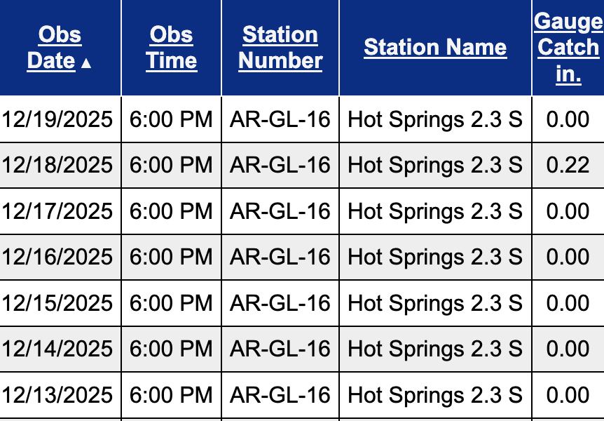 Welcome to another Weekly Wrap Up! This week brought some cold and some decent temperatures and a little bit of rain across the Natural State. Here’s a look at the temperature highs and lows over the past week from my Tempest weather station in Hot Springs, plus a look at the rain totals this week from my CoCoRaHS rain gauge.