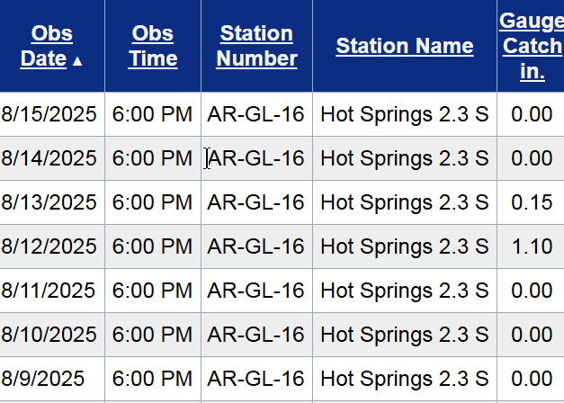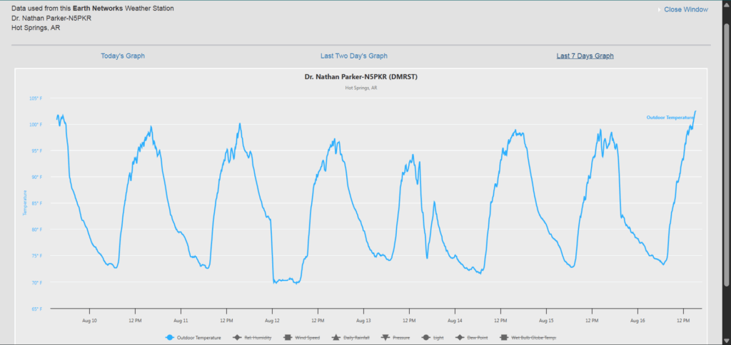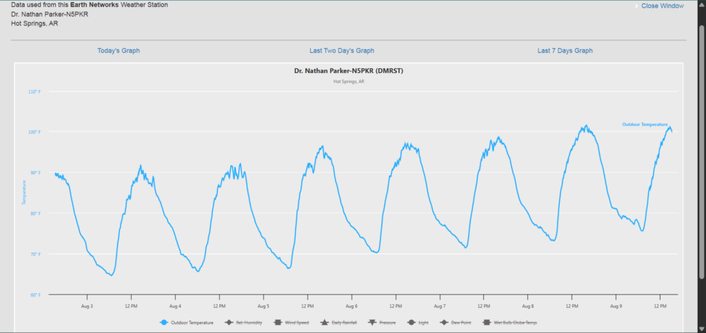 Welcome to another Weekly Wrap Up! It was a warm and dry week across the Natural State. Here’s a look at the temperature highs and lows this past week from my Tempest weather station.