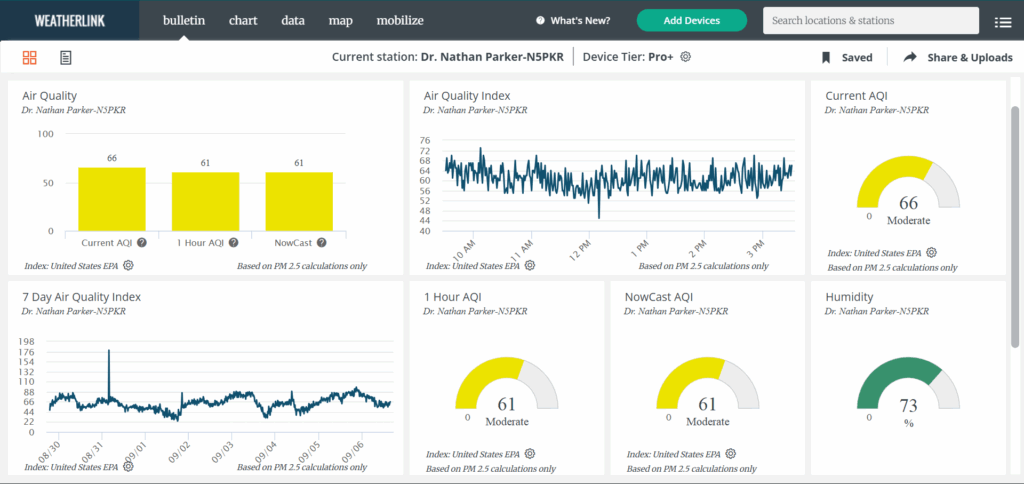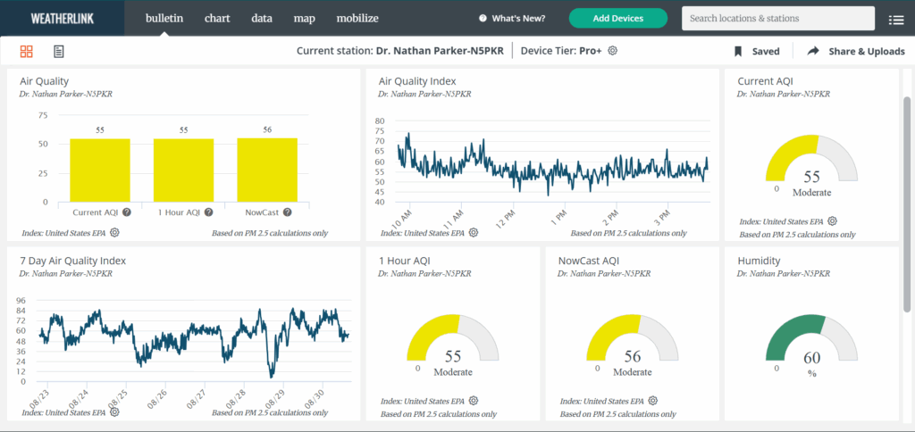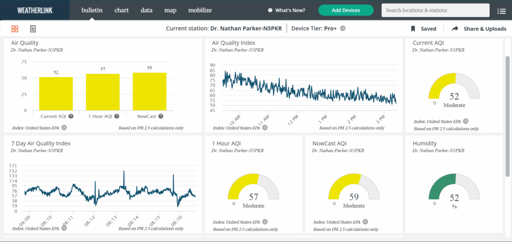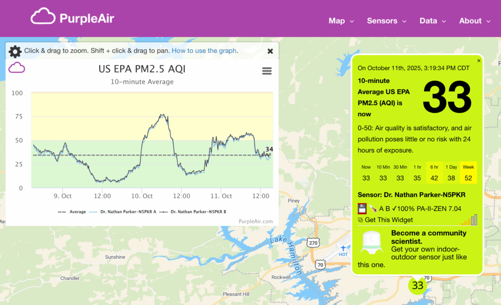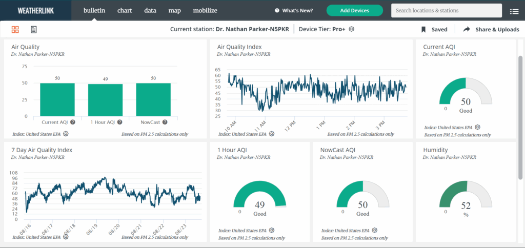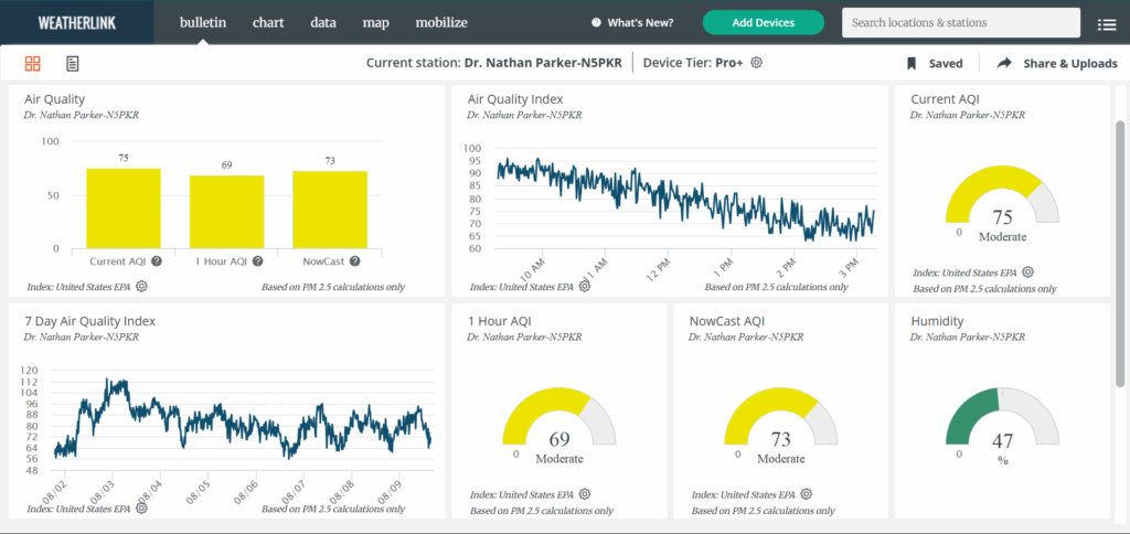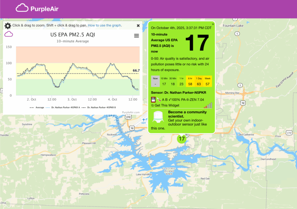Here’s a look at the current conditions from my Tempest weather station plus a look at the current air quality from my PurpleAir.