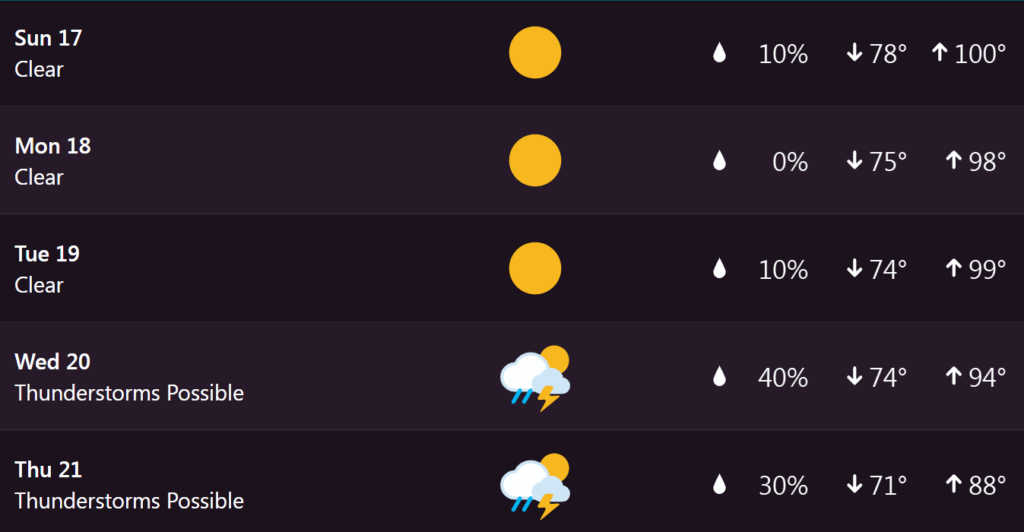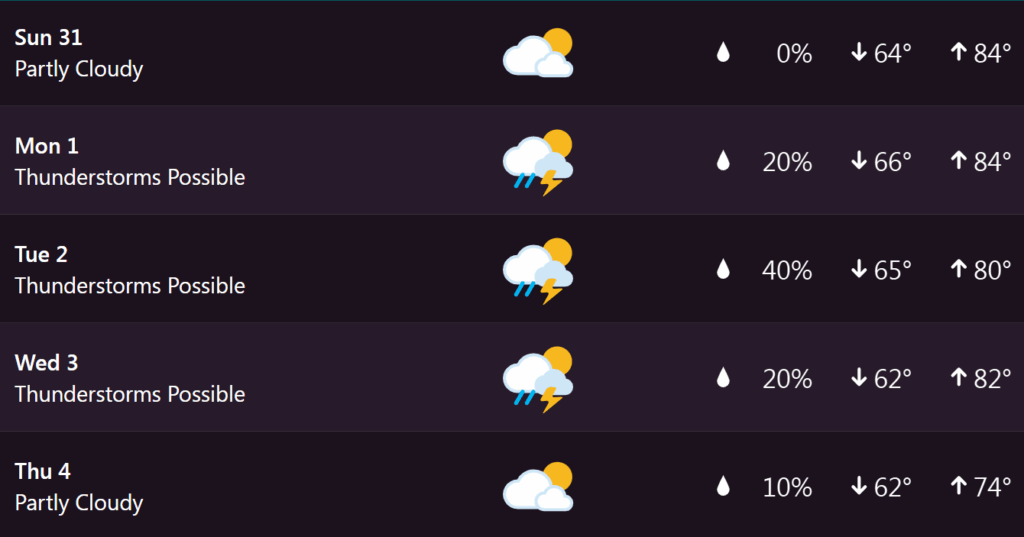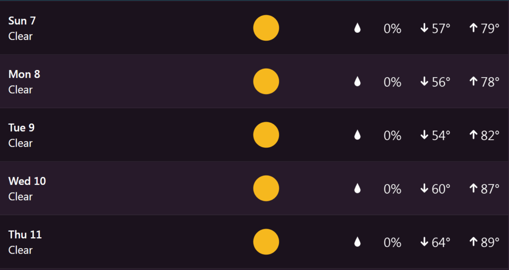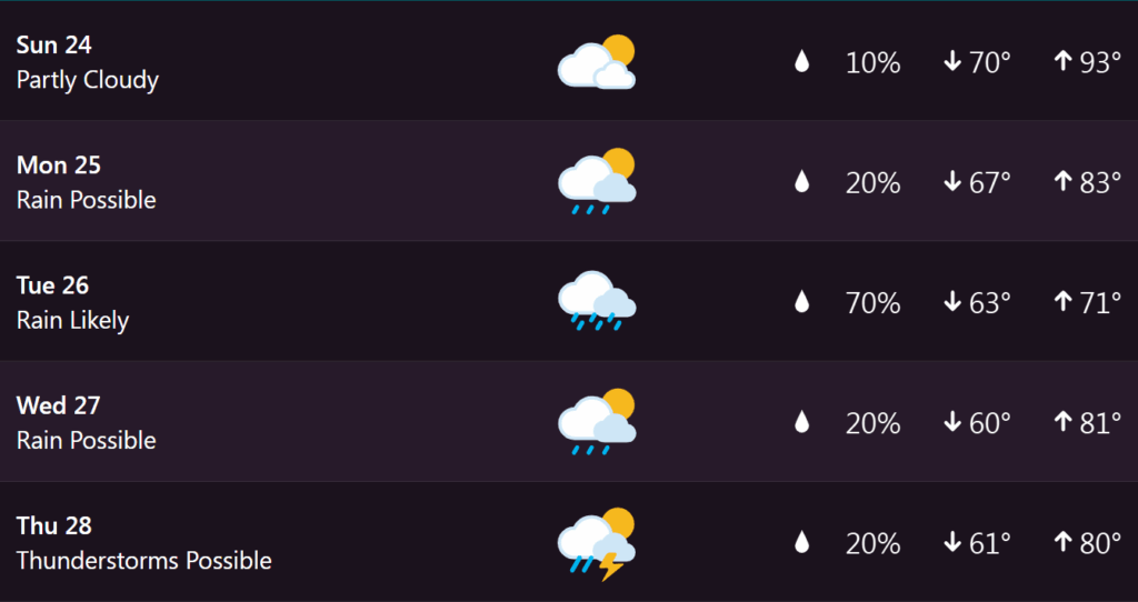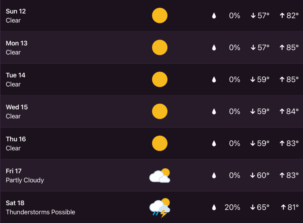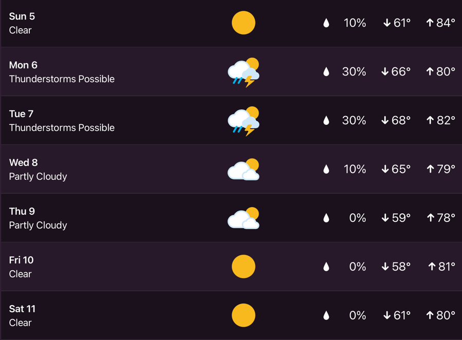 Here’s a look at the seven-day extended forecast from my Tempest weather station.